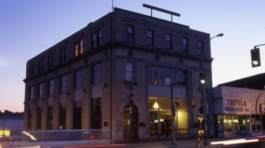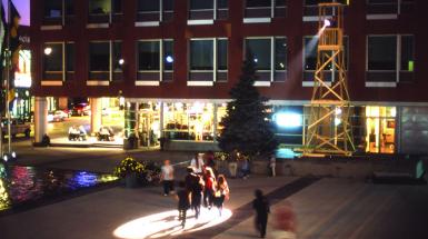 The year 2002 marked the celebration of the 100th anniversary of public hydroelectric power in Kitchener. P2P (Power to the People) by Kitchener artists Rob Gorbet, Susan Gorbet, and Matt Gorbet highlighted the ubiquity of the most basic icons of the electric age: the household switch and bulb. Significantly situated at the entrance to City Hall, P2P puts the marquee, a now-ubiquitous and iconic tool of corporate communication, into the hands of the general public. By engaging in the everyday unconscious activity of flipping a light switch, citizens are able to communicate directly, without the oversight of a centralized authority, within a government-owned public space. Literally and figuratively, P2P brings power to the people.