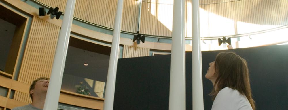 Life Pulse—Participants will put their hands on either side of any of the light columns and will wait until the column announces that their pulse has been read. The column will announce their pulse rate and will broadcast this rate from the light. This pulse rate will be maintained until a new pulse rate is read.
