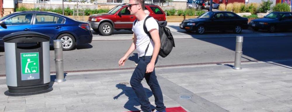 For the duration of one week, Vincent Chevalier will be giving himself the Red Carpet Treatment. While temporarily residing in Kitchener, he will only walk on a 2-meter length of red carpet that he will constantly (re)place in front of himself. This performance will begin the moment he steps off the train upon arrival until he returns home a week later.