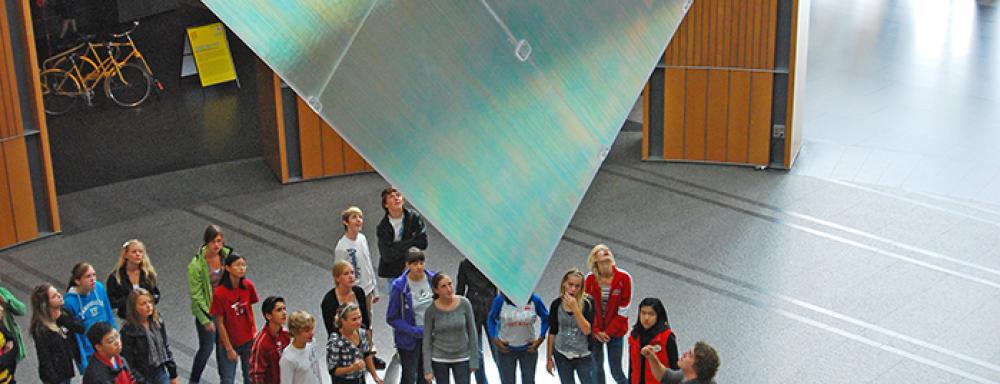 The final installation exceeded expectations. Hanging in the middle of the Rotunda, it luminously reflected and scattered each day’s changing light, and during the evening the piece warmed up as it reflected the spectral heat of the floodlights. Approaching the work from the side, it appeared as a narrow sliver dangling from high above, but as one walked around, it reflected and refracted a continuously changing array of colours making it a vividly sculptural work.