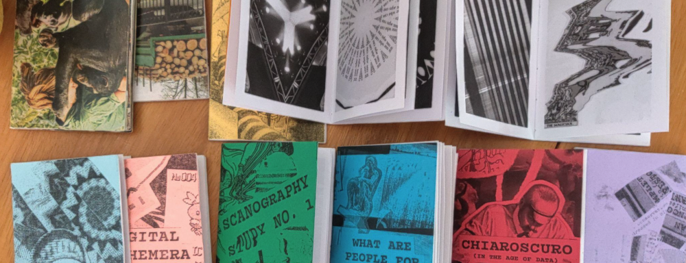 Joel Becker’s Visions of Entropy is a public zine project and installation available for free throughout CAFKA.23 exhibition zones in Kitchener, Waterloo, and Cambridge. The collection of zines celebrates happy accidents, employing collage and experimental scan art and analogue video glitching techniques that interrogate the place of technology and control by way of a dedicated emphasis on producing unexpected, and ultimately interesting visual results. These zines explore how our digital footprints, relationships, and memories stay with us; how we stay by our own selves by reclaiming those past experiences; and how these all things, even the digital, are ultimately temporary. Our people, our memories, and our data stay with us – but only for a time.